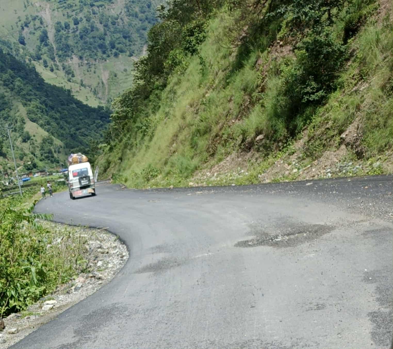 चिसापानी-राडी सडक खण्डको कालोपत्र उप्कियो