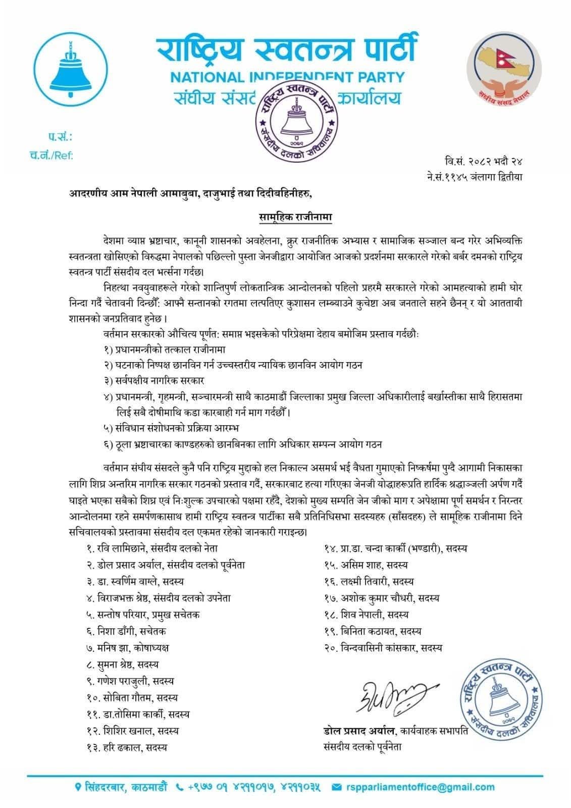 रास्वपाका सबै सांसदहरुको सामूहिक राजीनामा