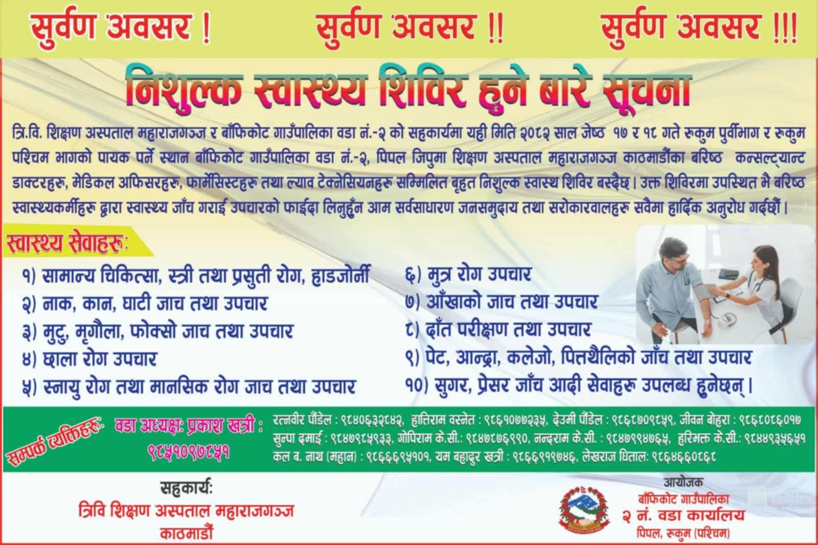 बाँफिकोट २ जिपुमा बृहत निःशुल्क स्वास्थ्य शिविर
