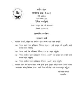 त्यस्तै, सञ्चार तथा सूचना प्रविधि मन्त्री पृथ्वी सुब्बा गुरुङले आमसञ्चार परिषद् विधेययक -२०८१ माथि विचार गरियोस भनी प्रस्ताव गर्ने कार्यसूची रहेको संसद सचिवालयको भनाइ छ ।