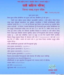 नेपाली कला साहित्य डटकम प्रतिष्ठान काठमाडौँको आयोजना र राप्ती साहित्य परिषद् जिल्ला शाखा रुकुम पश्चिमको सहआयोजनामा हुने जिल्लाव्यापी खुल्ला कविता र ठाडीभाका प्रतियोगिताको पुरस्कारराशि निर्धारण गरिएको छ । आगामी चैत २२ र २३ गते त्रिवेणी गाउँपालिका र मुसिकोट नगरपालिकामा आयोजना गर्न लागिएको बृहत प्रतियोगिताका लागि पुरस्कारराशि निर्धारण गरिएको हो ।