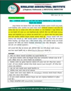 साथै कृषि, भेटेरिनरी तथा अन्य तहका अनलाइन कक्षामा भर्ना हुन चाहने विद्यार्थीलाई ३० प्रतिशत शुल्क छुटको व्यवस्था गरिएको संस्थाले जनाएको छ ।